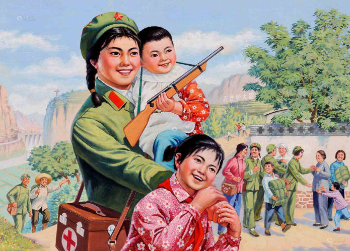 1978年2月5日,原中华人民共和国邮电部发行了一套两枚、面值为8分的《军民一家人》特种邮票。票面图案《团结战斗》是一幅年画,画面描绘了解放军战士在江南水乡帮助民兵进行水上训练的情景;《共夺丰收》图案也是年画,描绘了解放军战士帮助农民插秧的劳动场景。